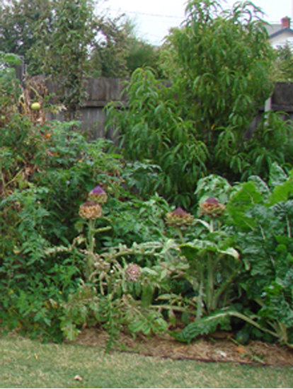 The three photos below are of same garden, now at the end of summer. The garden is looking fantastic, and the owners are reaping the benefits of using greywater. If you look closely, you can see the same trees, and the amazing growth they have had in only three or four months!