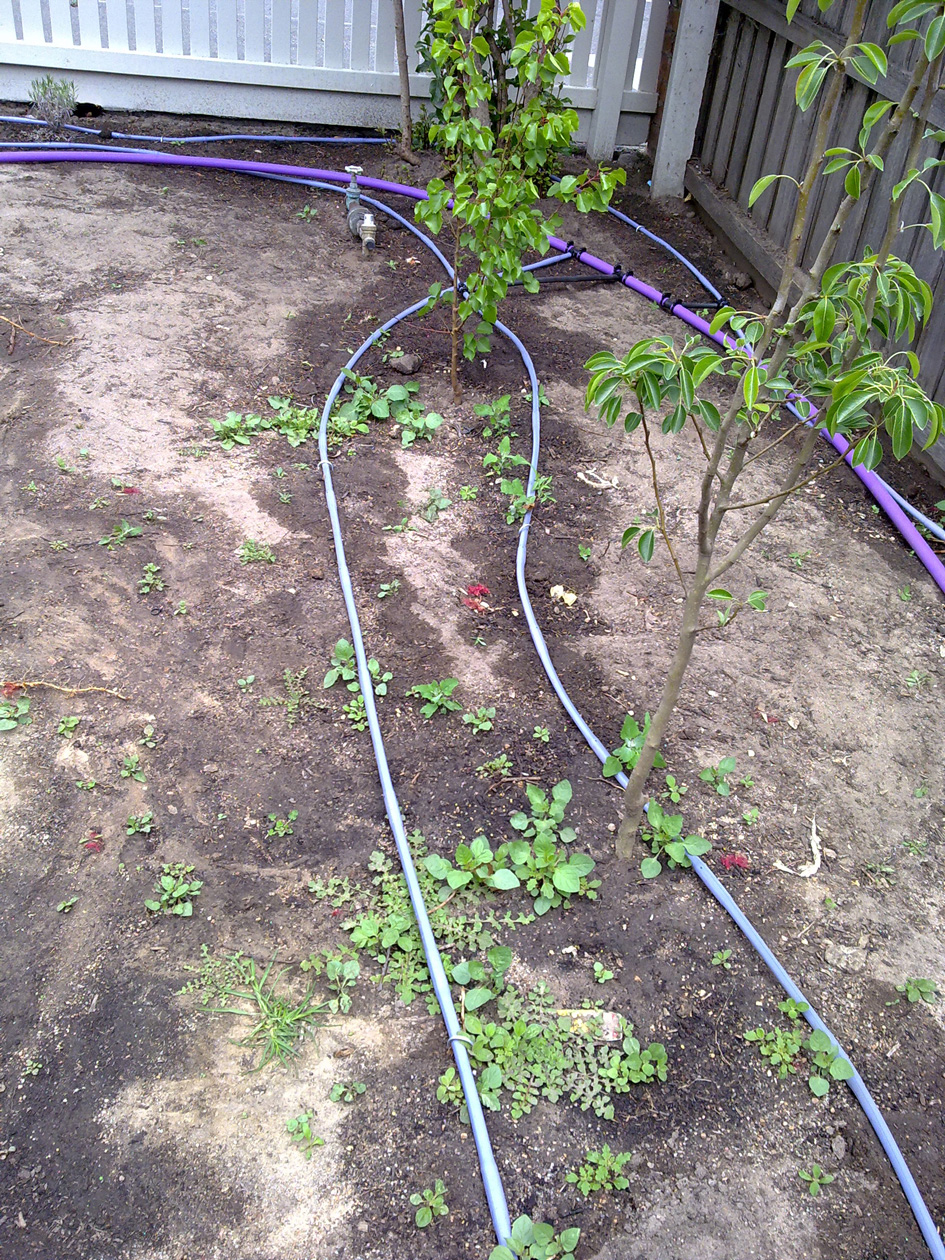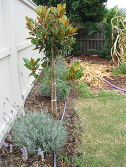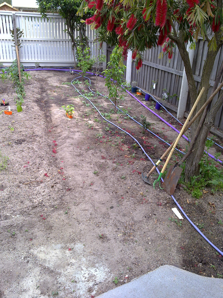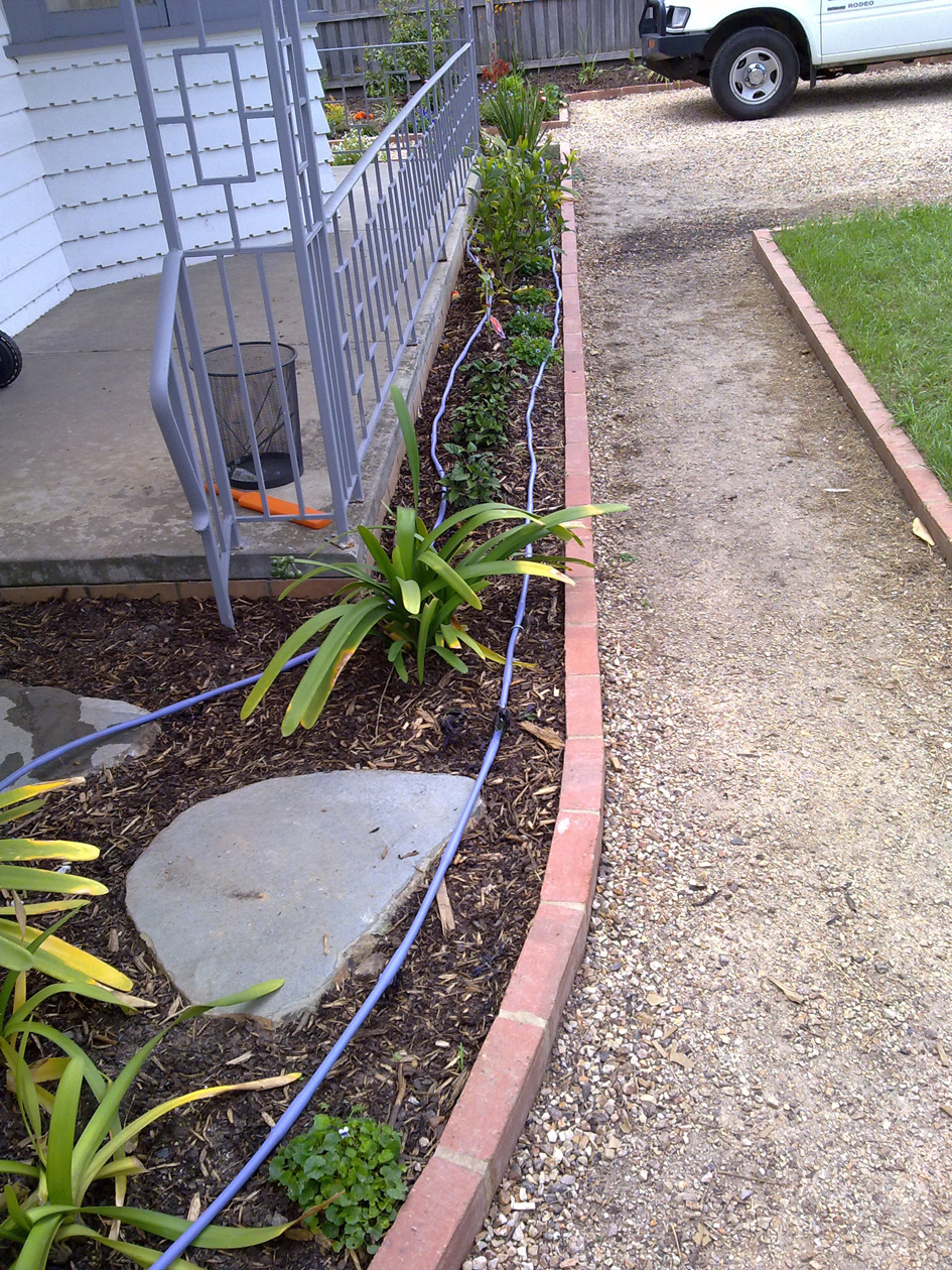 The garden in our photos is now watered by one of our greywater units, diverting the greywater from the laundry and bathrooms. The Gator Pro pumps the water directly into the dripper line, so the garden is automatically watered whenever water is used in the laundry, shower and bath. The greywater unit and the irrigation system were installed before a dry summer in southern Victoria.